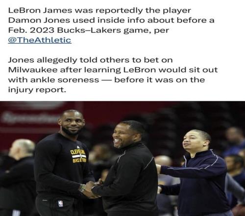 一条泄露勒布朗·詹姆斯伤情的短信,掀起了NBA近年来最大的赌球风暴,“在消息公开前赶紧重注雄鹿!詹姆斯今晚缺阵,下足够注码,让琼斯能捞一笔!”这是2023年2月9日早晨,前NBA球员达蒙·琼斯发给同伙的短信内容,当天晚上,湖人果然以106-115负于雄鹿,而詹姆斯确实未出战,这条直白而贪婪的短信,随着FBI近日公布的起诉书细节,将NBA隐秘的赌球暗流彻底暴露在公众面前