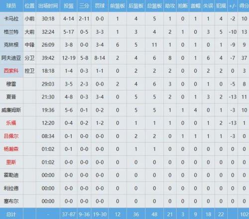 马刺数据如下: